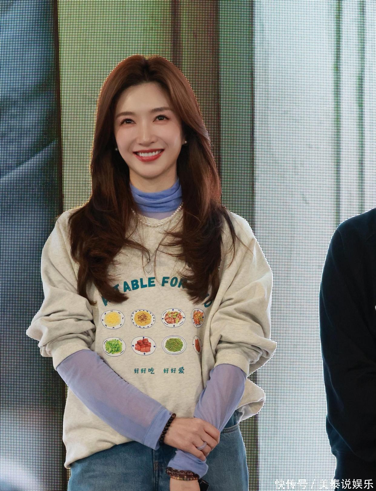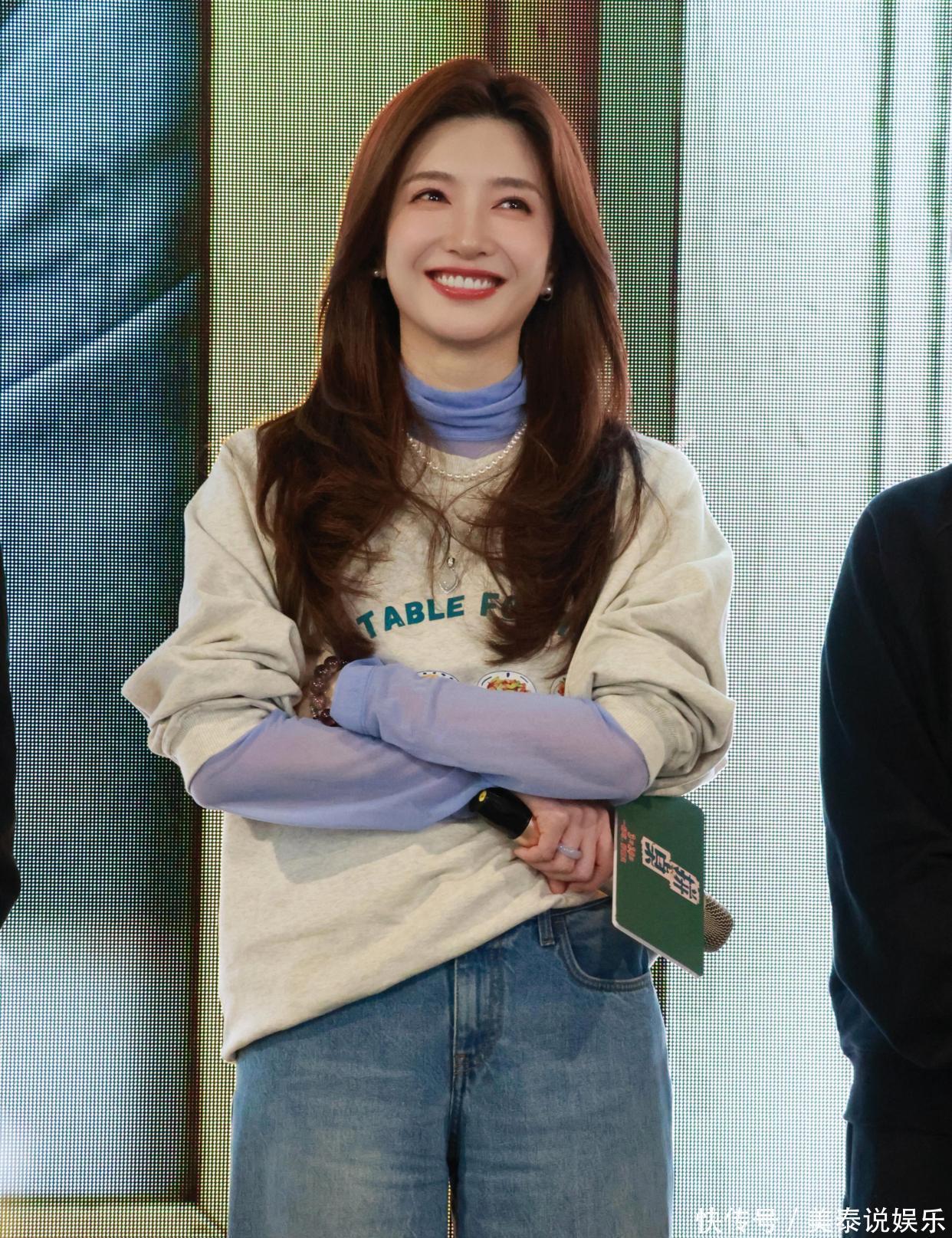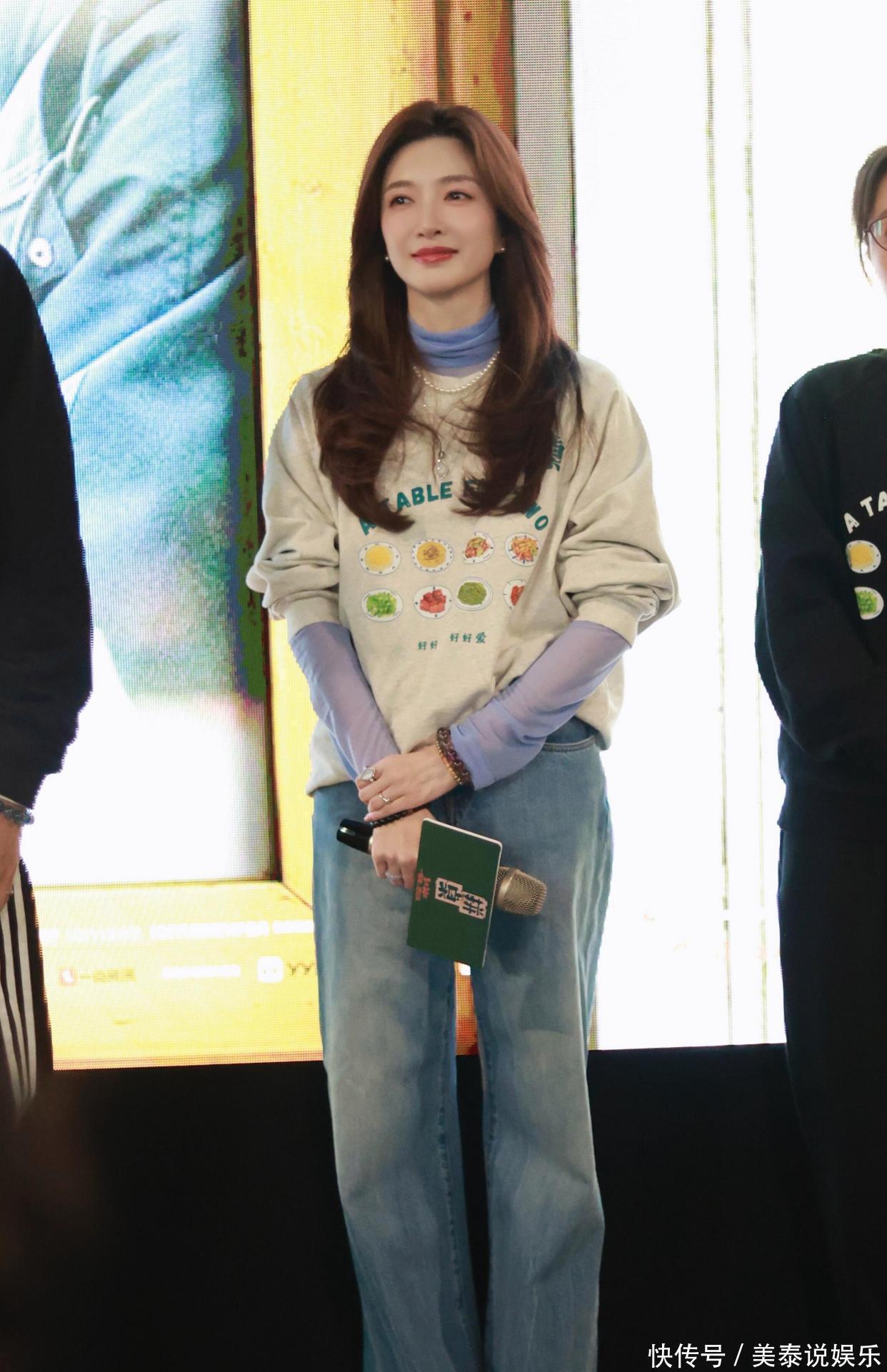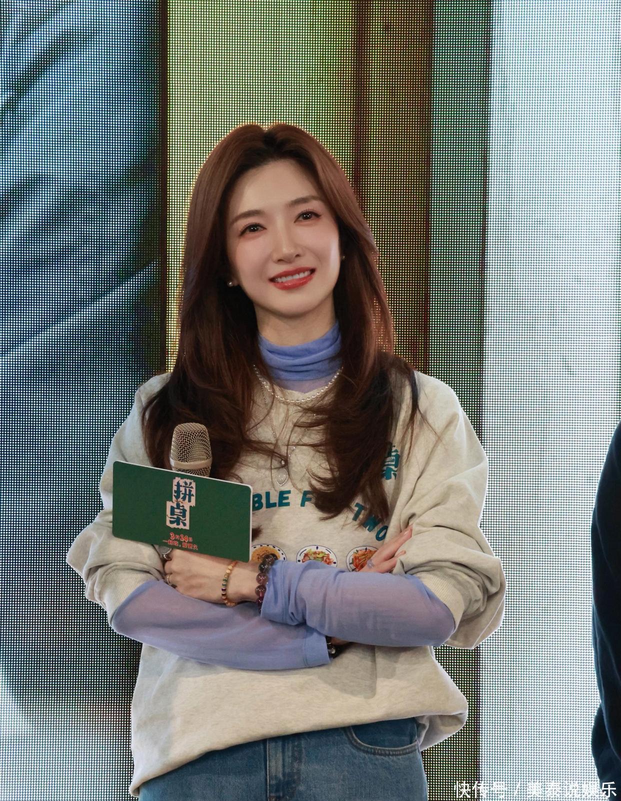 江疏影这套造型最戳人的,就是这件浅紫色薄纱打底衫。低饱和的浅紫自带柔光滤镜,温柔又显白,把春天的清新感直接穿在身上。薄纱材质轻盈通透,朦胧的透视感恰到好处,不会过分暴露,却悄悄增添了几分柔媚与女人味。作为内搭,它不抢戏、不厚重,反而让整体穿搭更有层次,哪怕是简单的T恤叠穿,也能瞬间摆脱路人感。男友风卫衣叠穿:慵懒松弛感拉满